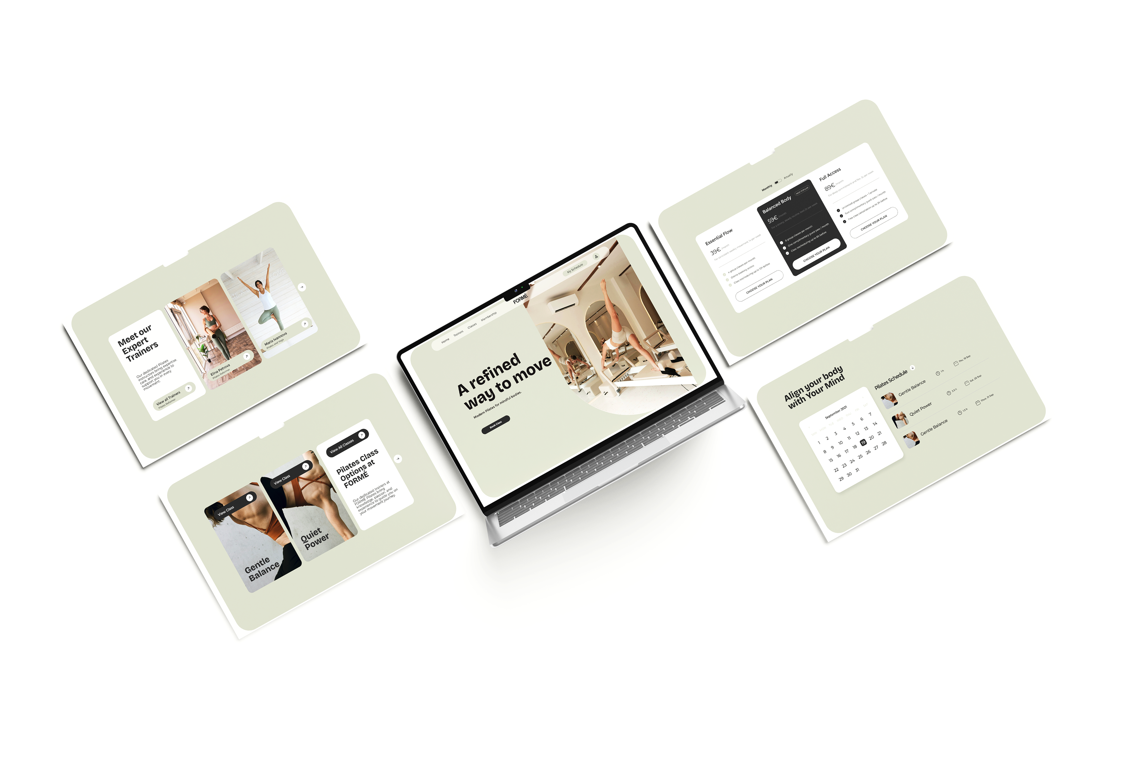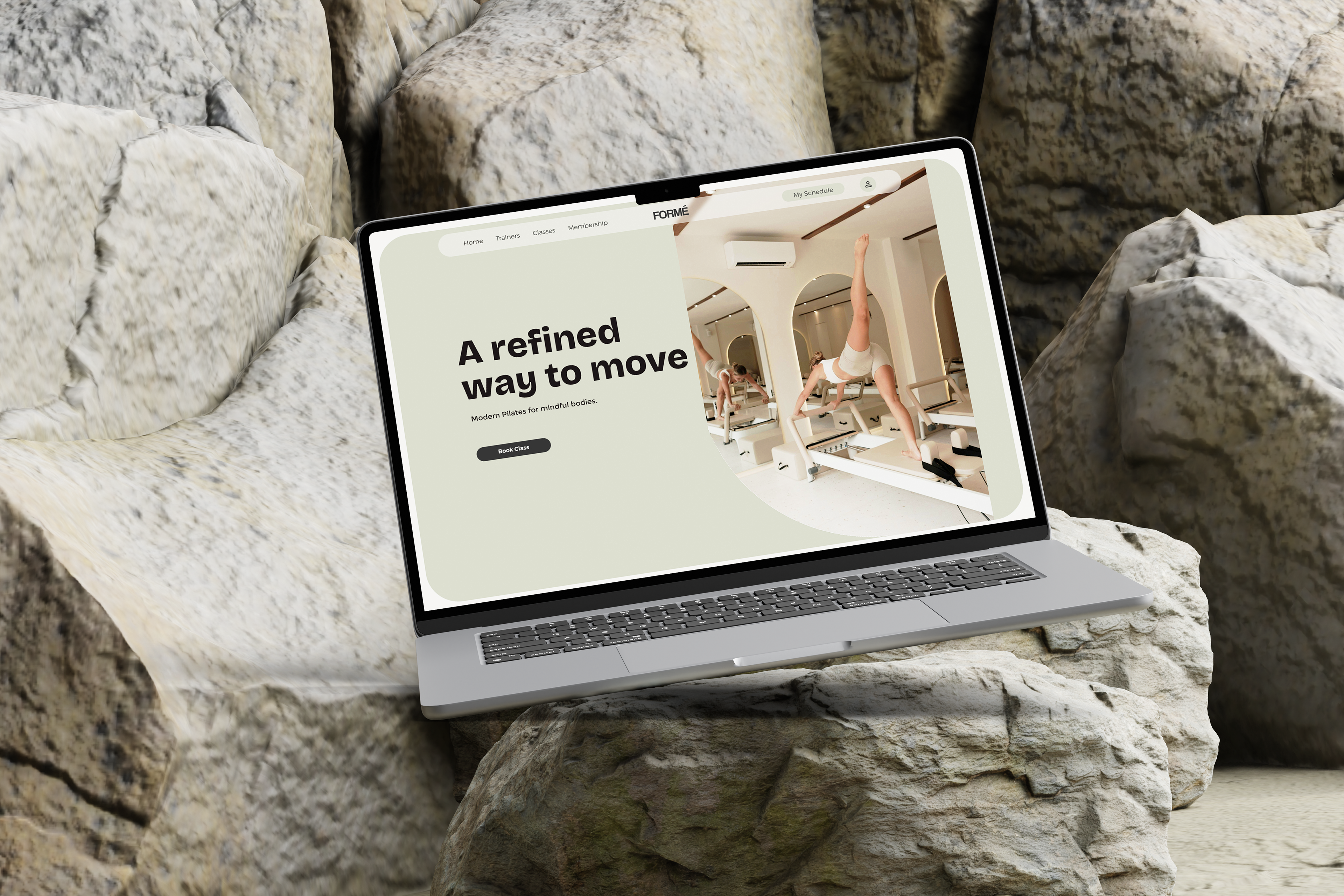 A clean, modern website designed for a boutique FORMÉ Pilates studio, focused on creating a calm, user-friendly experience for booking classes and exploring services. The project highlights mobile-first design, intuitive navigation, and visual storytelling, guiding users toward mindful movement and building strength with ease.